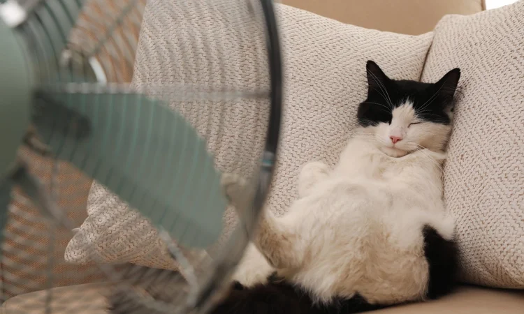 Having a fan or air conditioner unit set up near where your cat likes to lie down